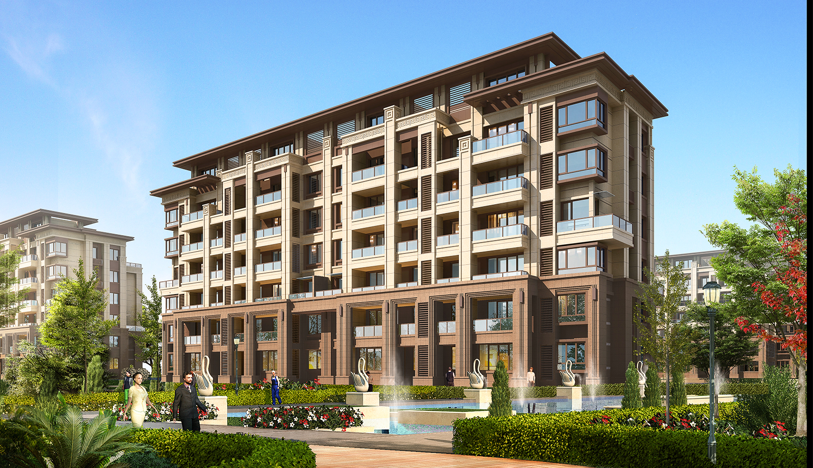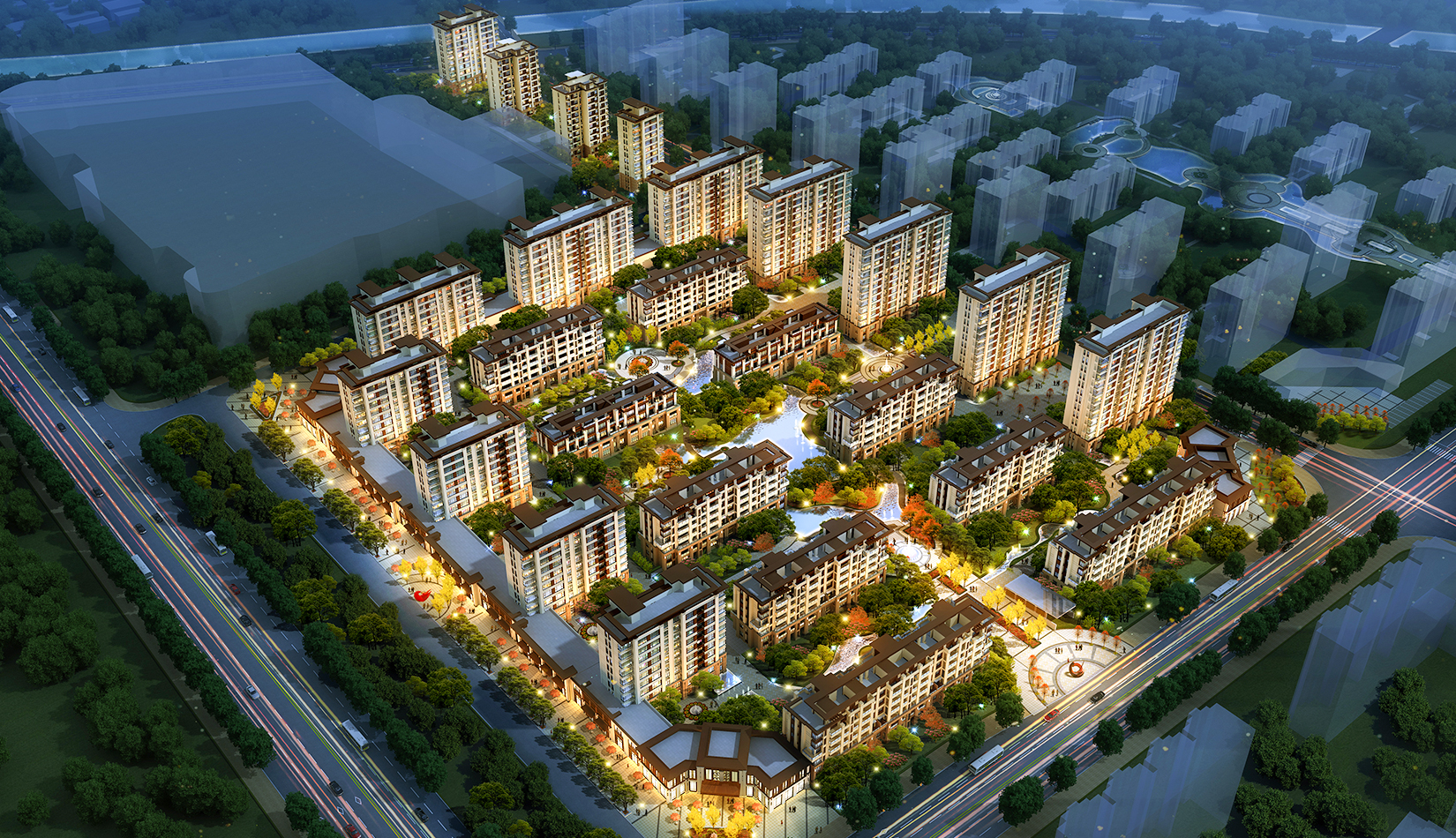 通過對(duì)基地場(chǎng)地價(jià)值的分析,綜合考慮容積率、建筑密度及航空限高等問題,以小高層住宅、花園洋房、疊拼別墅結(jié)合考慮規(guī)劃布局。景觀主要應(yīng)以內(nèi)部打造為主。建筑布局外高內(nèi)低,將多層產(chǎn)品放在中間較好的位置,同時(shí)形成建筑高度向中心景觀帶疊落的空間感覺,最大化利用中心景觀帶。